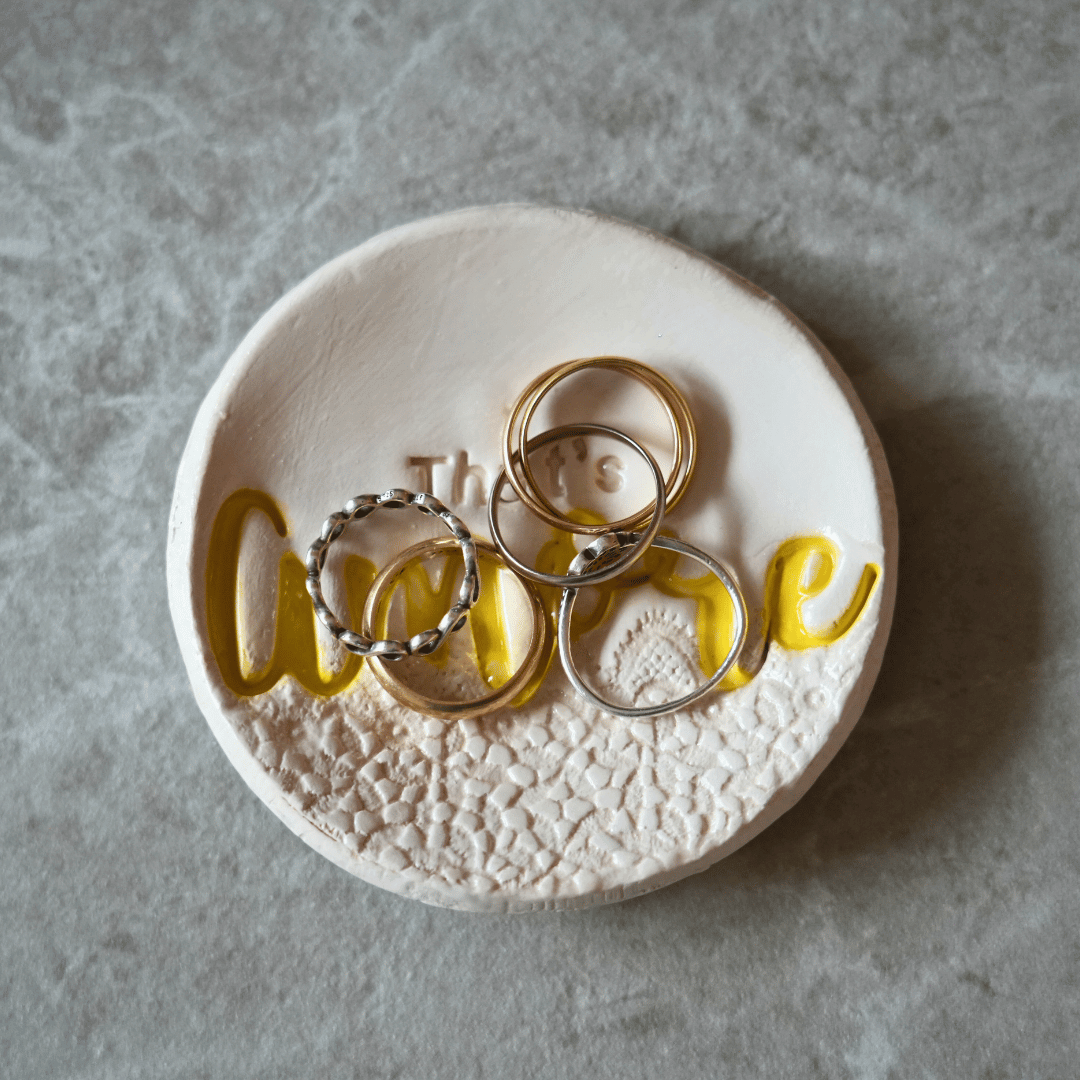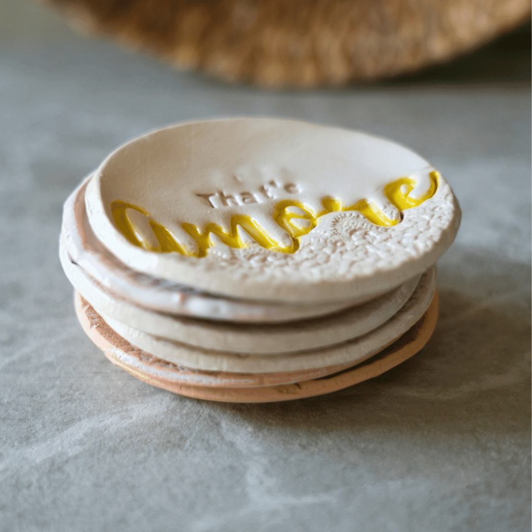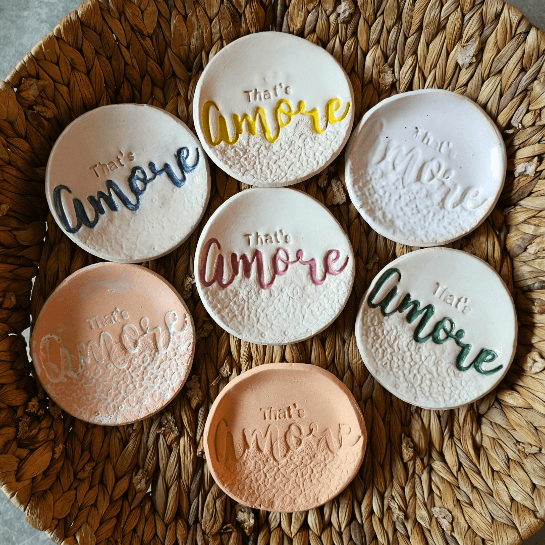 Rendi speciale ogni momento con un piattino in argilla fatto a mano, personalizzabile con qualsiasi scritta e colore. Perfetto come regalo, decorazione o dettaglio per eventi!